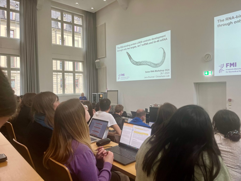 ConferencesSwiss RNA workshop | Bern, Switzerland January 26, 2024April 5, 2024 grosshanslab Jana was selected to give a talk on the RNA-binding protein LIN28 and how it controls development exclusively through let-7 miRNA and lin-46 mRNA