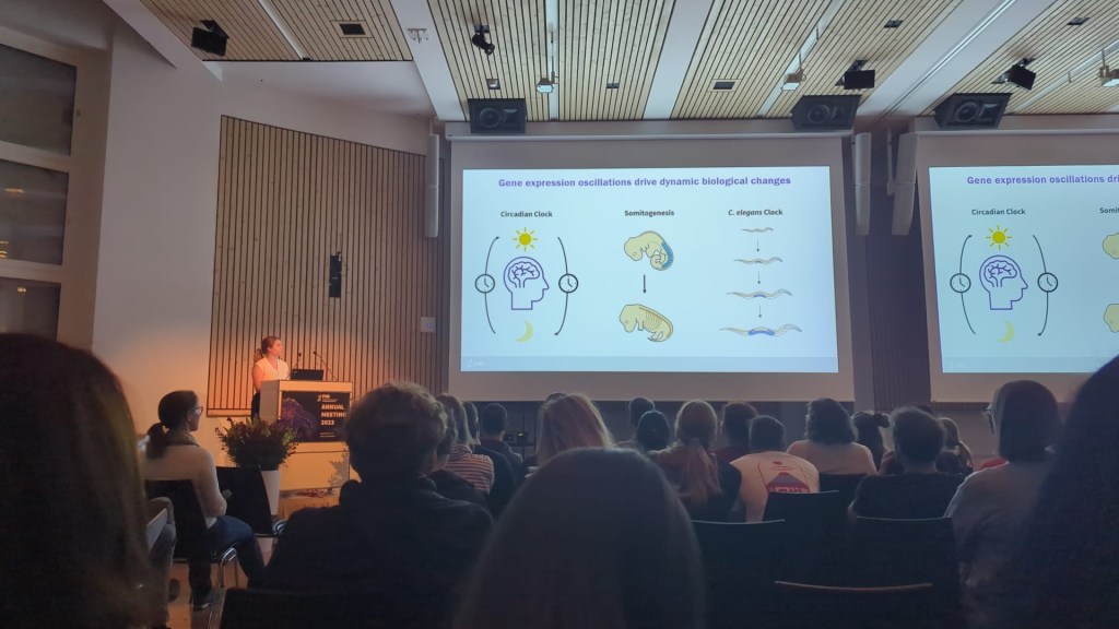 ConferencesSeptember 25th – 27th, 2023 | FMI Annual Meeting | Davos, Switzerland September 25, 2023April 5, 2024 grosshanslab Maike gave a talk on her PhD project, explaining to non-C. elegans people, how dynamic chromatin changes drive a transcriptional oscillator